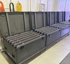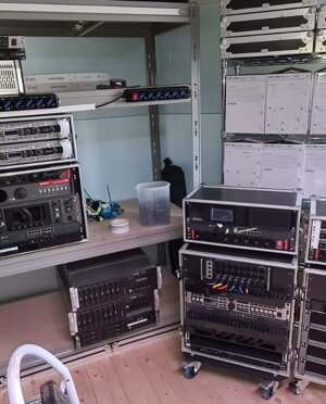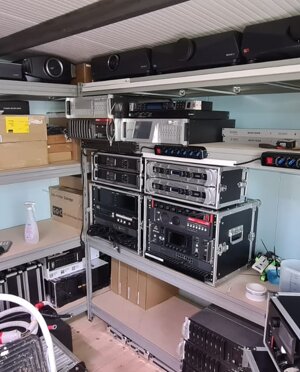 Siamo dotati dei più moderni proiettori, 2K 4K Laser e Xenon capaci di coprire schemi dai 6 ai 30 mt, 7 diversi impianti audio, 3 di questi sono line array, uno dei quali capace di coprire sale profonde anche 80 mt. Una Regia Mobile dotata di una Cabina di Proiezione integrata con 2 proiettori, climatizzata e munita di TMS pel la gestione dei contenuti, connessione dati via satellite e regia Audio e Video per la gestione di manifestazioni anche con più sale attive contemporaneamente. Con l'utilizzo delle nostre sale possiamo verificare e testare e editare contenuti DCP per la verifica dei contenute pre manifestazione.